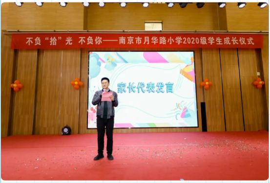 生命是一场奇妙的旅程,十年岁月走过的每一步,都有父母的辛苦和汗水,在十岁这一重要时刻,家长代表朱清爸爸上台给孩子们送上了祝福。细数和孩子在一起的十年快乐时光,动情讲述了对孩子的盼望,对学校的感激。希望小月芽们能在成长的路上永远保持一颗感恩的心,永远保持着蓬勃向上的力量。