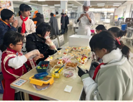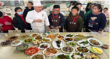 人间至味是清欢,当冬日阳光轻洒在彩虹餐厅,一场非比寻常的月华家宴在温馨和热情中缓缓拉开帷幕。六年级的小月芽们围绕“一元复始,万象更新”主题,巧妙设计菜谱、采买食材、操办家宴,淋漓尽致地展示一学期的劳动教育成果。参与家宴的每个学生,各自在团队中扮演着不同的角色。从营养师到采购员,从配餐员到主厨,从服务员到推广员,家宴岗位应有尽有。在他们的共同努力下,三十二道独特的佳肴彼此映衬,像是一道道由色香味俱佳的食物组成的画卷。每道菜品背后,都是孩子们对家的理解和对将来的梦想。