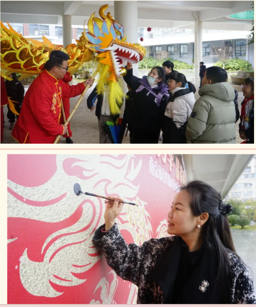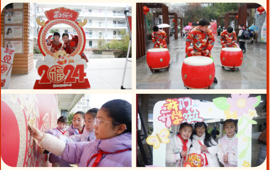 “哇,快看,这舞龙太精彩了!”刚入校门的小月芽们便被这舞龙表演吸引住了。舞龙贺春是中国传统文化中的重要元素之一,腾飞的蛟龙,是团结,是勇敢,是一往无前。小月芽们有的头戴龙饰,有的身穿红色服装,穿梭在舞龙队伍中,俨然化身成了一个个小龙人。咦?小月芽们手中拿的是什么呀?“这是‘龙鳞’,我们每个人都有,咱赶紧去贴”。充满灵性的祥龙满载着美好的心愿,每一片龙鳞上写满了龙年的祝福,小小的龙鳞,承载了小月芽们大大的梦想和老师们殷切的期望!大家小心翼翼地将龙鳞贴在巨龙身上,夏翠莲书记和丁红生校长执笔为祥龙“点睛”,寓意引领学校高质量发展的宏伟蓝图,同时为小月芽们送上浓浓祝福和深深期许。