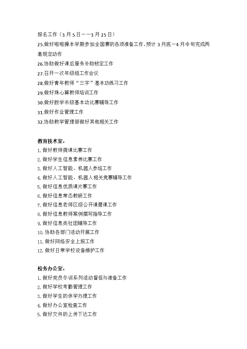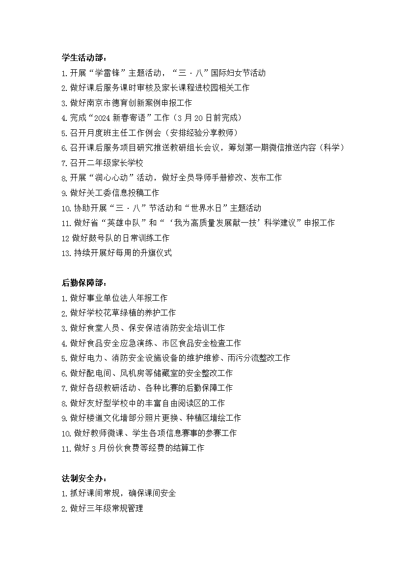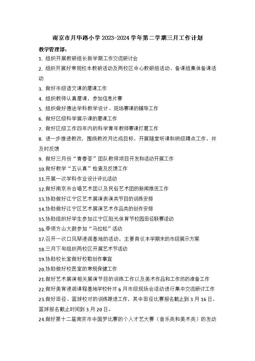 月华路小学2023-2024年第二学期各部门三月份工作计划