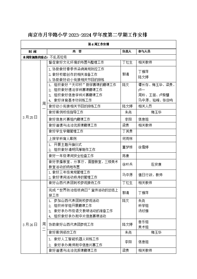 伟德可信任网站2023-2024第二学期第6周工作安排