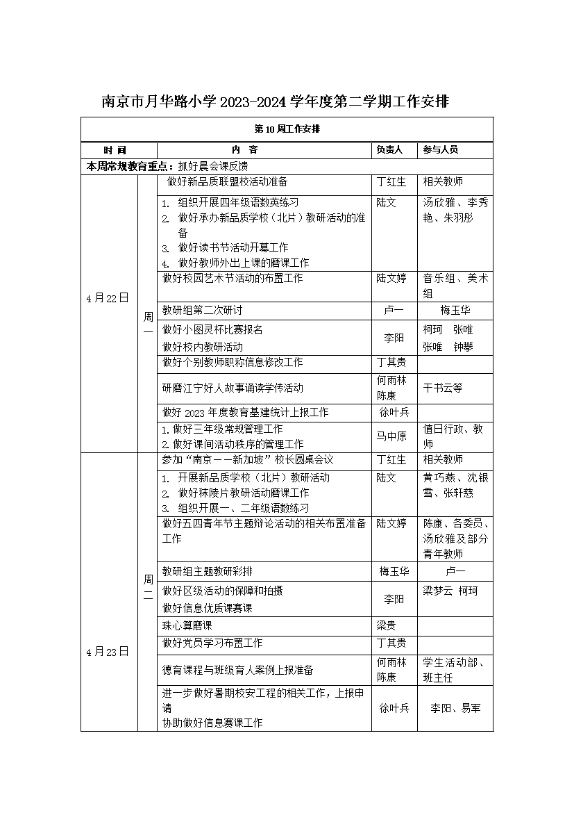 伟德可信任网站2023-2024第二学期第10周工作安排