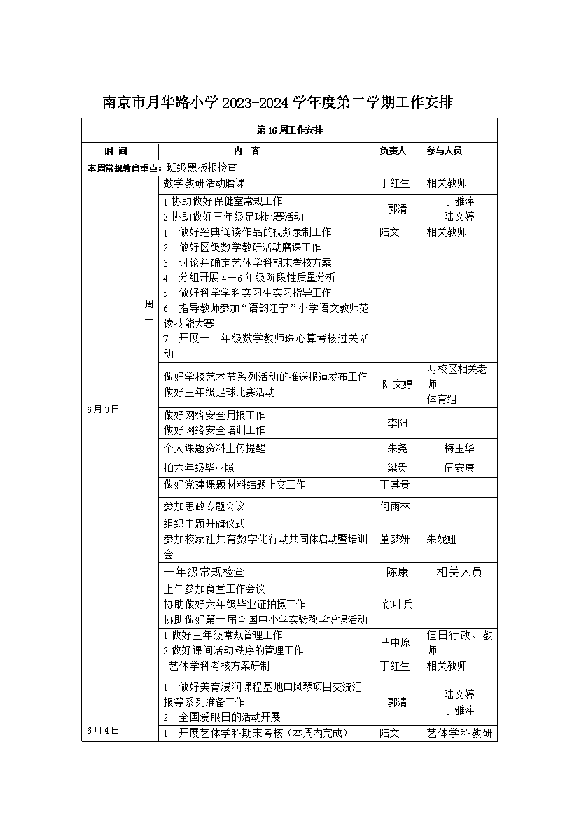 伟德可信任网站2023-2024第二学期第16周工作安排
