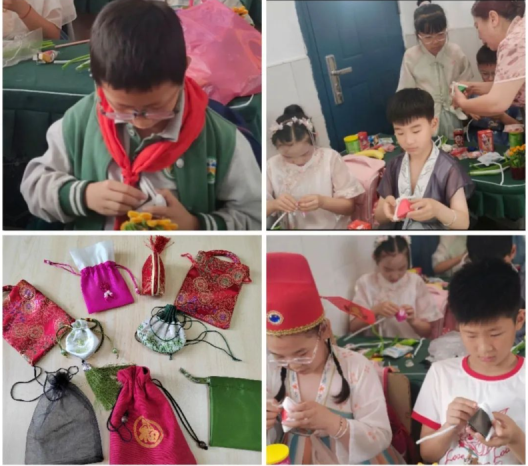 佩戴香囊不仅是端午节的传统习俗,更是人们情感交流的媒介。一针一线,缝入的是对家人的思念与祝福;一丝一缕,散发的是对生活的热爱与期许。它承载着深厚的文化底蕴,是中华民族独特的情感表达方式。课后,孩子们将自己最美好的祝福与香囊一起送给了老师与伙伴。
