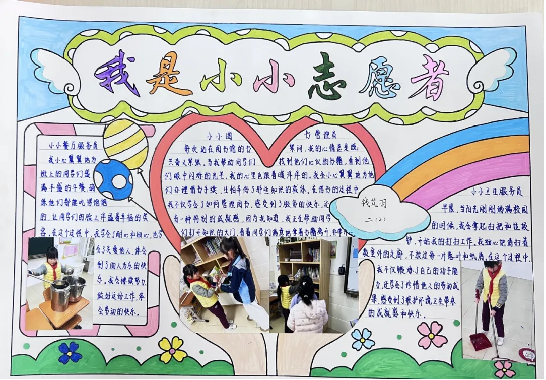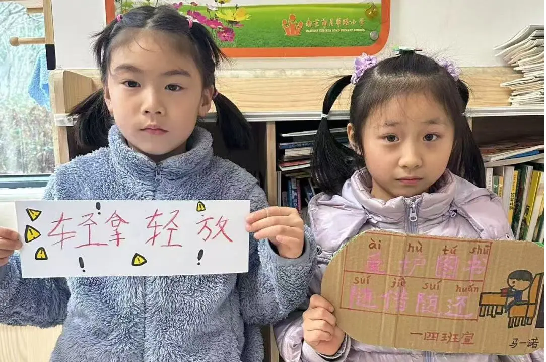 在这个生机勃发的春日里,月华路小学迎来了一股和煦的新风——“小小志愿者”服务站正式启动了。“小小图书管理员”们忙碌而有序地穿梭于书架之间,协助老师整理图书。过程中他们发现,上课铃声响起的瞬间,同学们迫切归还的图书稍显凌乱。于是,他们创造性地提出了图书整理的小妙招:给每组捐赠的图书贴上色彩标签,明确归还区域。不仅如此,他们还发挥创意,亲手设计并制作了一张张色彩鲜艳、内容丰富的阅读海报和标语,引导同学们养成良好的阅读习惯,让书香弥漫校园的每一个角落。“班级就餐服务员”们热忱地为大家分发餐具,整理餐盒。他们发现不少同学在倾倒厨余垃圾时,会不慎将餐勺掉进厨余垃圾桶。这时候的他们不怕脏、不怕累,不厌其烦地伸手捡出餐勺,降低食堂餐具的损耗。为了避免此类事件的再次发生,他们机智地向学校后勤管理部的老师提议:在厨余垃圾桶口增设粗格网纱,保证倾倒厨余垃圾顺畅的同时,又能顺利阻隔不慎滑落的餐具。“校园安全小卫士”们细心观察同学们的课间活动场地,敏锐发现每一个可能存在的风险。他们自制醒目的安全提示牌,提醒大家:文明至上,安全第一。