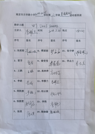 根据学校教研会议精神和英语教研活动安排,2025年2月26日下午第一节课,由我校李雅兰老师执教四年级下册Unit 5 Seasons。全体英语教师调整好自身课务,提前围绕主题思考,并准时参加活动。也欢迎其他学科教师参与本次教研活动,为今后的教学工作注入新的活力与创意。
