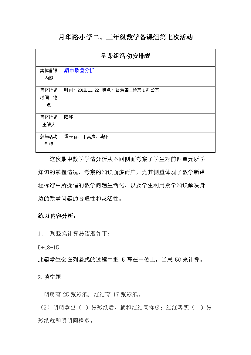 【集体备课】二、三年级数学组集体备课活动(七)