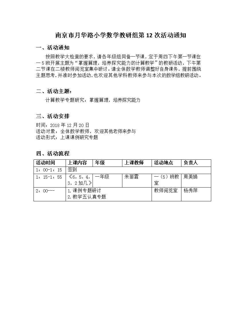 数学教研组第12次活动通知