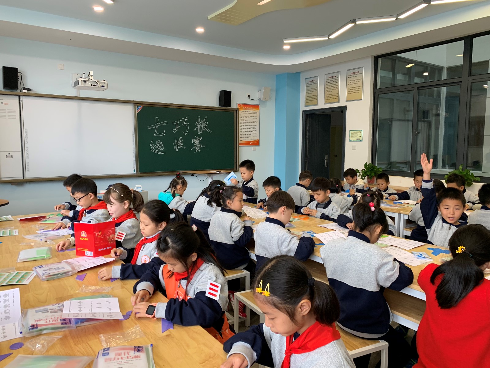 伟德可信任网站同学们积极报名参加比赛,他们运用七巧板展开丰富的想象,拼搭出自己的设计作品,通过考察共选出10名同学代表我校参加比赛。同学们每天利用午休和下午大课间训练,并且积极和辅导教师交流精心修改自己的作品,放学回家后也会和父母一起讨论修改办法,力求自己的作品能够更棒!