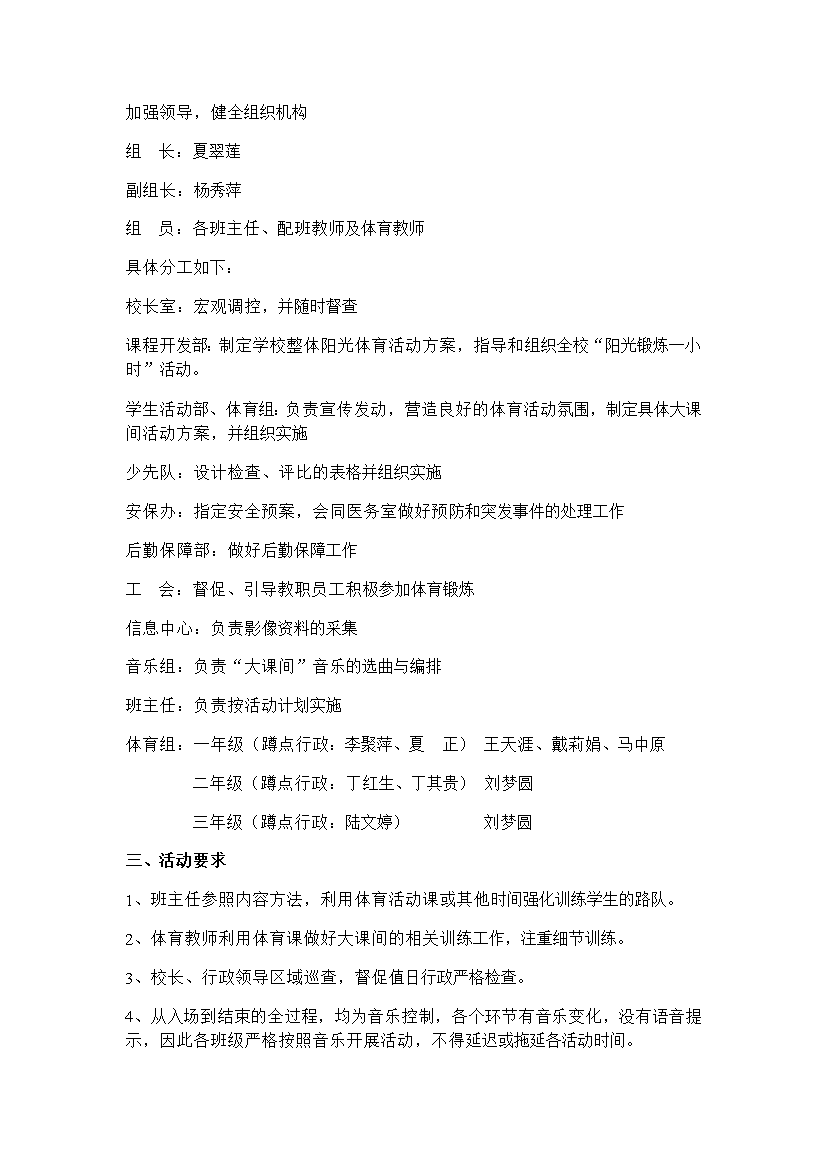 伟德可信任网站春夏季阳光体育大课间活动方案