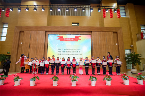 锣鼓声声响云霄,歌声迎来万年红!最激动人心的是学校的颁奖典礼,月华少年们通过在寒假里,完成《我和月月一起过寒假》十一个主题活动,并在开学典礼活动现场,创意的展现了他们的寒假生活,更是回顾了美好与难忘。孩子们在假期里都出色的完成了各项主题活动,学校对主题任务完成出色的班级以及学生进行了表彰。表彰一1班等6个班级为:“月华假期优秀班级”;王宴泽等48位同学为:“月华假期小主人”;司一然等48位同学为:“月华假期小能人”。在颁奖环节中,学生代表用稚嫩的嗓音,道出了对老师的感谢,吟出了对未来的希望。师生之间的情谊在绵绵的春风中被拉得越来越长。在这个鲜花和微笑竞相绽放的舞台,月华少年用小小的身影重现了本领,展现了榜样的力量。