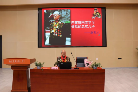 接着,赵明才爷爷讲述了自己20多年来宣讲雷锋精神的经历。他先后担任了百余所学校的校外辅导员。耄耋之年的赵爷爷,已经做了4次大手术,割掉了胆、肾,虽然身体大不如从前,但是他在报告中说:“只要我活一天,我都会尽全力把雷锋传承下去,让雷锋精神感动更多的认、影响更多的人,做一粒雷锋精神的种子,让雷锋精神在时代的土壤里生根发芽,开花结果。”