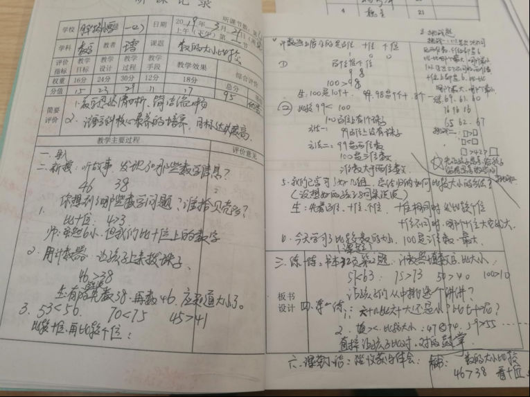 杨秀萍校长:练习的安排很合理,习题也多种多样,王雪老师每学习完一个知识点,就让学生做相应的练习,然后再进行综合测试练习。学生做习题起来,就显得有据可依,又可以学以致用。而且,在题型上也多种多样,有直接的比较数字大小的;有帮小动物送信的生活题;也有把数字从小到大排列的;还有把一个同几个数字进行比较的,分类练习,降低了学习难度,题型多样,激发了学生的求知欲,学生做起习题,就不感到厌烦,做题的效果就很好。