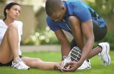 急救措施:踝关节扭伤后,不要继续行走,也不要揉搓、转动受伤关节,以免进一步加重损伤。应立即用冷毛巾或冰块敷患处,有利消肿、止痛、缓解肌肉痉挛。24小时后方可改为热敷。如果怀疑有内出血,最好用弹性绷带加压包扎,但不要过紧,以免妨碍包扎部位以下的血液循环。如果怀疑有骨折,最好用夹板或就近找木棍固定受伤的踝关节,并尽快去医院就诊。