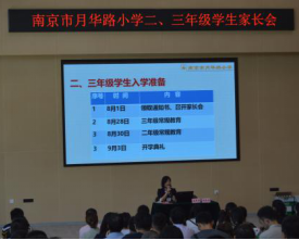 上午8点30分,近200位家长齐聚学校分享厅,在杨秀萍副校长的主持中,南京市月华