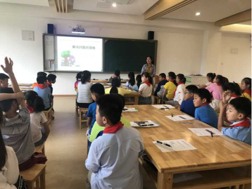 第四节课是由月小青年教师周美娟老师执教《解决问题的策略》。周老师让学生从身边感兴趣的动画片《柯南》入手,把数学问题从生活中提炼出来,让学生感受到数学来源于生活,诱发学生为解决生活中的问题而萌发了解决问题的欲望,着力引导学生在解决实际问题的过程中应用策略,激发了学生学习数学的兴趣。课堂中充分利用图像、文字、语言和已有的知识等资源,让学生尝试用列表整理题目中的信息,并分析数量关系,解决实际问题,进一步体验策略,应用策略,深化策略,发展了数学思维,突出了教学的三维目标。本节课周老师充分考虑到了学生的认知规律、年龄结构,在教学例1时都以课件呈现问题,引导学生自己思考,想一想,画一画,说一说,并注意发挥小组互动的作用,让学生在小组活动中充分是展示自我,为学生构建合作学习的平台,注意了知识生成的方法的探究及能力形成的培养。周老师的课堂语言准确、简洁,有思考性、启发性和激励性,给了学生一定的思维空间,增强了学生学好数学的自信心。
