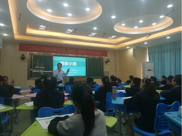 为有效达成工作室的研修目标,促进工作室成员教学水平的提高,2019年10月18日,在伟德可信任网站举办了“江苏省小学数学名师工作室(主持人:戴厚祥)首次研修活动,且邀请了南京市五老村小学的吴玉国特级教师,本次活动以五年级课堂教学为载体,在一节课的观课议课中拉开帷幕。